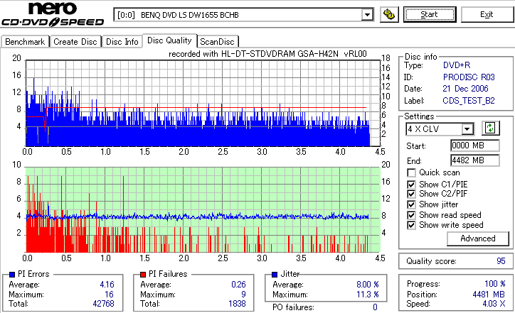 - BenQドライブでのCDSpeed 品質テストグラフ -