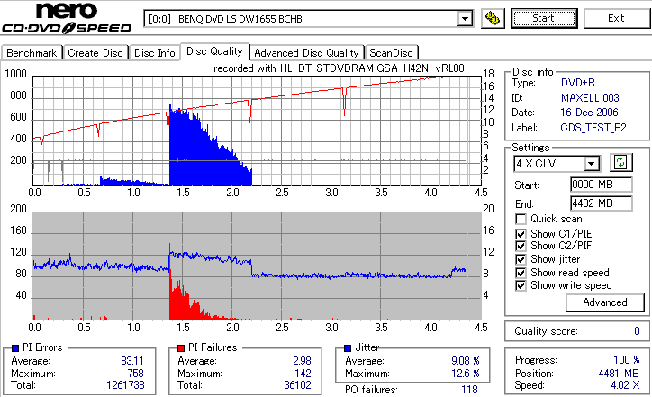 - BenQドライブでのCDSpeed 品質テストグラフ -