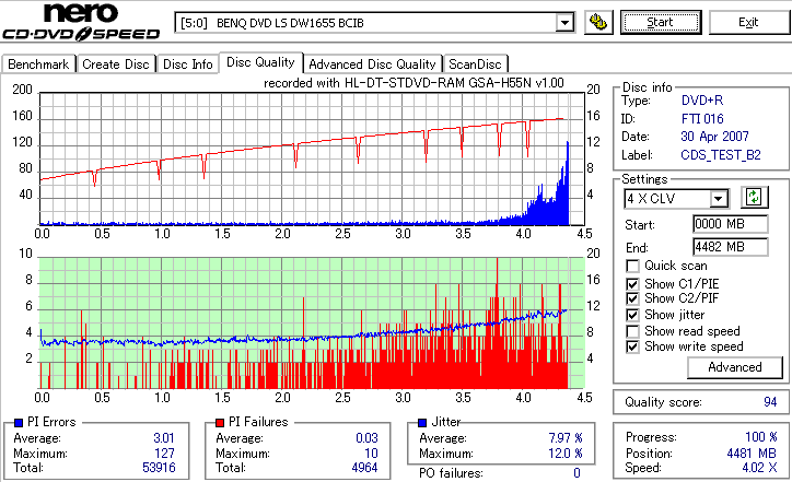 CDSpeed Quality Scan with BenQ DWxxxx - BenQドライブでのCDSpeed 品質テストグラフ - |