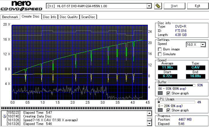 CDSpeed "Create DataDisc" - CDSpeedでのデータディスク作成時の速度グラフ - |