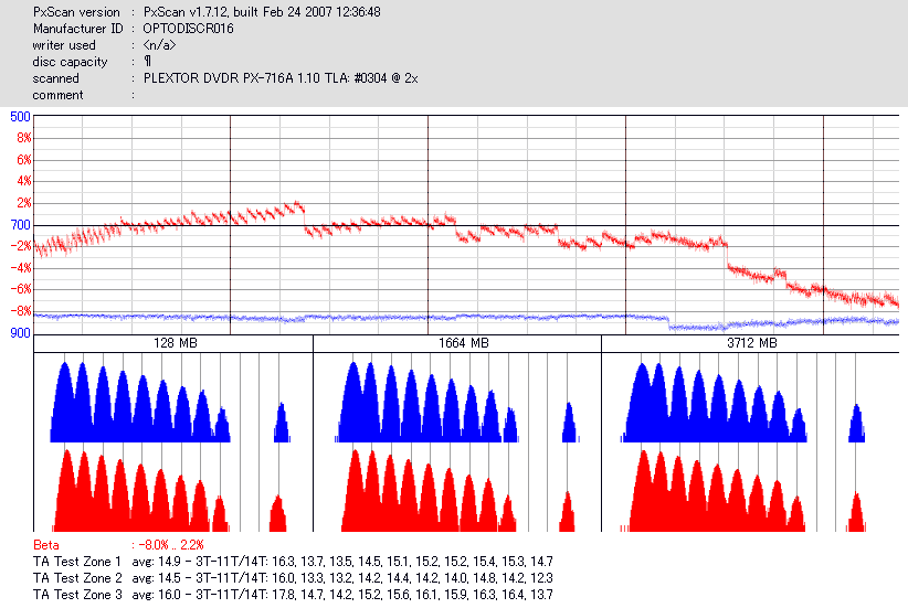 - PX-760AでのPlexTools Q-check PI/POのグラフ -