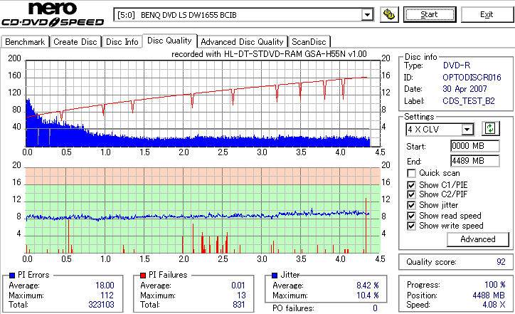 CDSpeed Quality Scan with BenQ DWxxxx