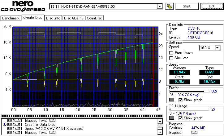 - CDSpeedでのデータディスク作成時の速度グラフ -