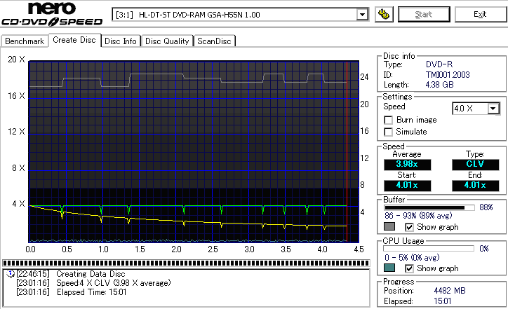 - CDSpeedでのデータディスク作成時の速度グラフ -