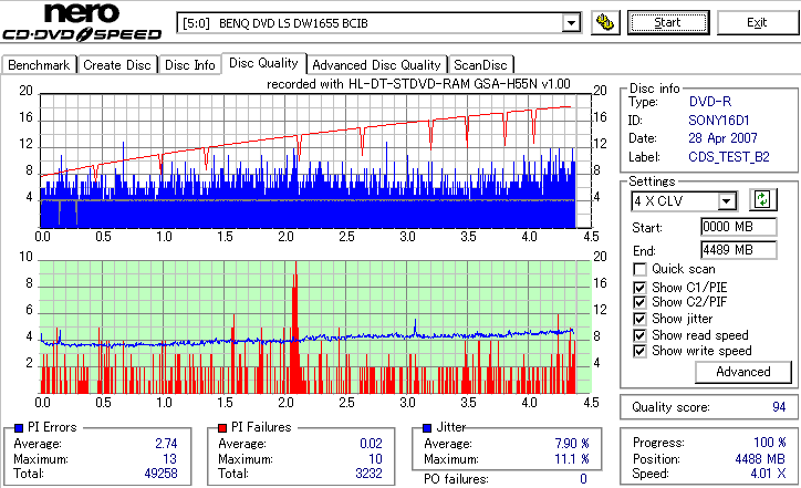 - BenQドライブでのCDSpeed 品質テストグラフ -