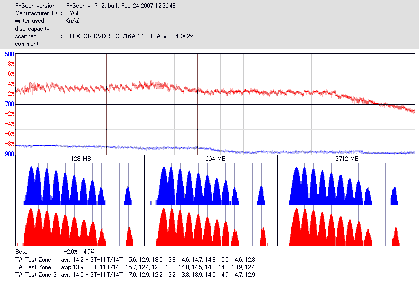 - PX-760AでのPlexTools Q-check PI/POのグラフ -