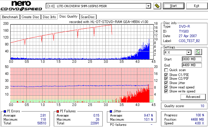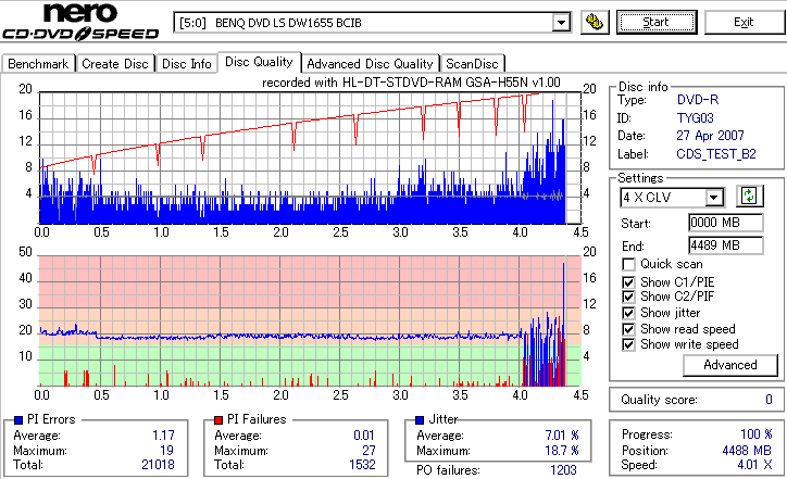 CDSpeed Quality Scan with BenQ DWxxxx