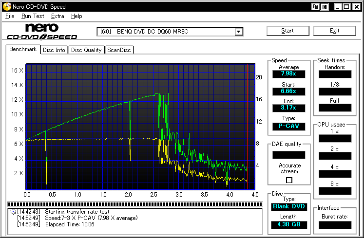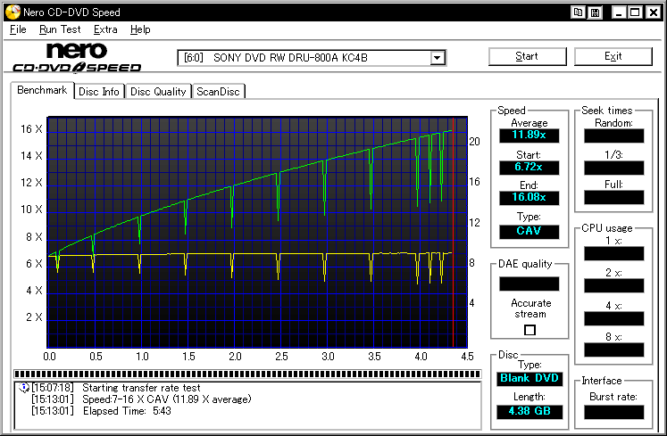 MITSUBISHI DVD-R 16x Write Transfer Rate の結果。 |