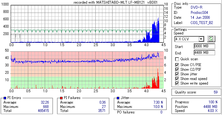 All-ways DVD-R 8x <ProdiscS04> 選択可能な速度:[2x-4x-6x] ![]() ![]() ![]() 外周がまずそうです。 |
