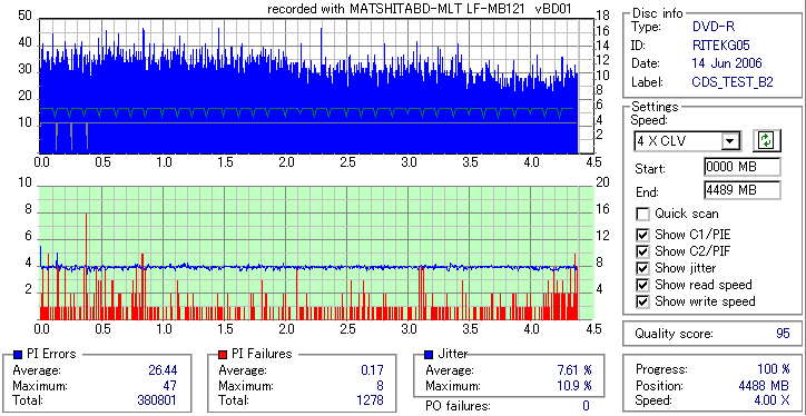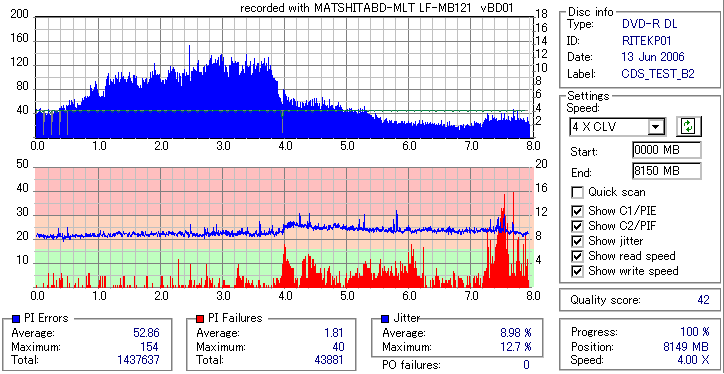 RiTEK DVD-R 8x <RITEKG05> 選択可能な速度:[4x-6x-8x] ![]() ![]() ![]() まあまあ良好です。 |