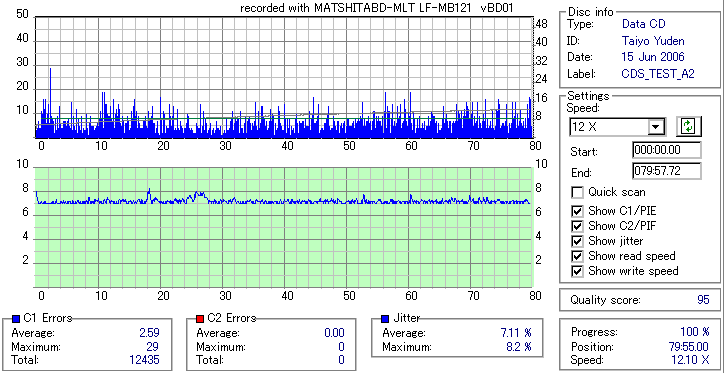 SONY CD-R 48x @ 8倍速記録 <太陽誘電製> 選択可能な速度:[8x-12x-16x-24x] ![]() ![]() ![]() 8倍焼きではJitterもエラーも落ち着いており、かなり良い感じです。 |