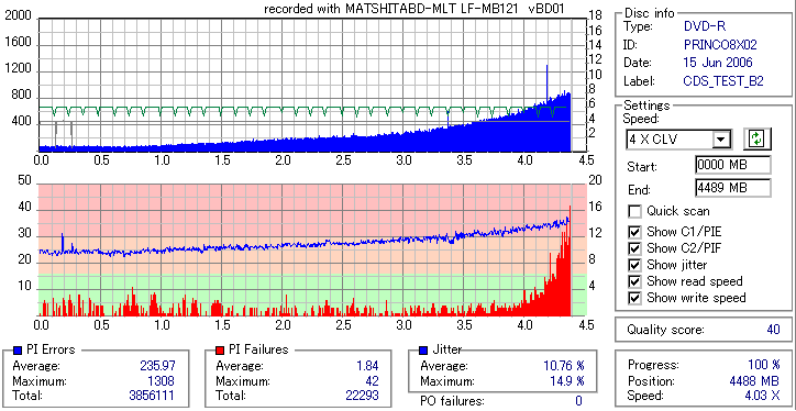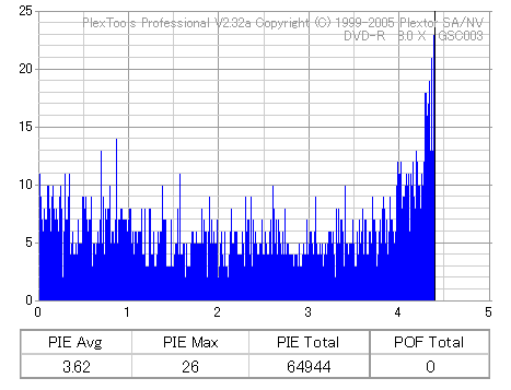SuperX DVD-R 8x <PRINCO8X02> 選択可能な速度:[2x-4x-6x] ![]() ![]() ![]() これは外周に問題ありそうです。 |