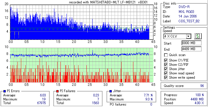 maxell DVD-R 8x <MXL RG03> 選択可能な速度:[4x-6x-8x] ![]() ![]() ![]() 内周怪しい気もしますが、これも問題なし。 |