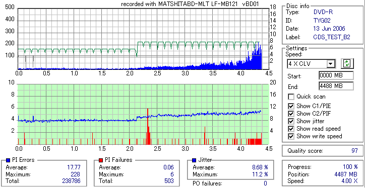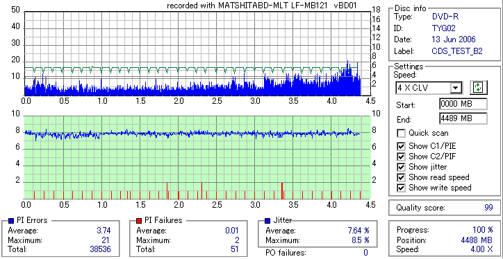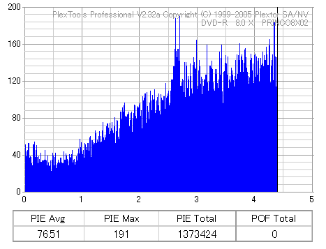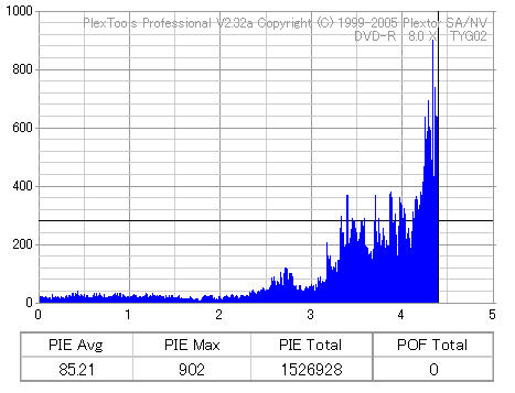 That's DVD-R 8x @ 6倍速記録 <TYG02> 選択可能な速度:[4x-6x-8x] ![]() ![]() ![]() 6倍焼きは非常に良好。 |
