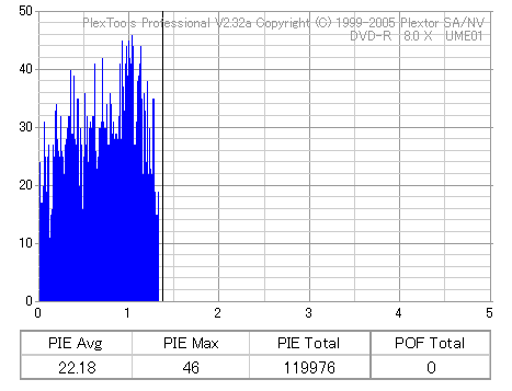 UNIFINO DVD-R 8x <IMC JPN R01> 選択可能な速度:[2x-4x-6x] ![]() ![]() ![]() 外周跳ねてますが、ギリギリ問題ないと思います。 |