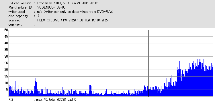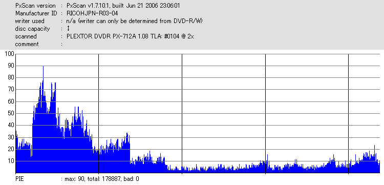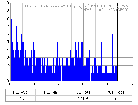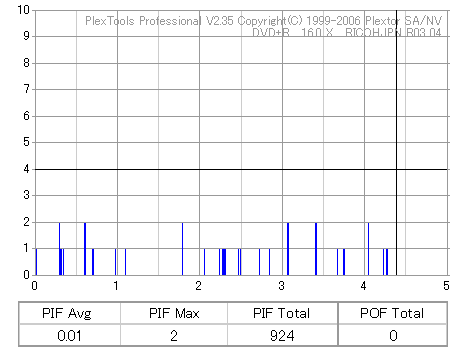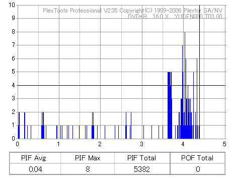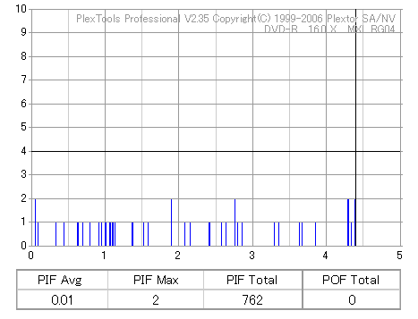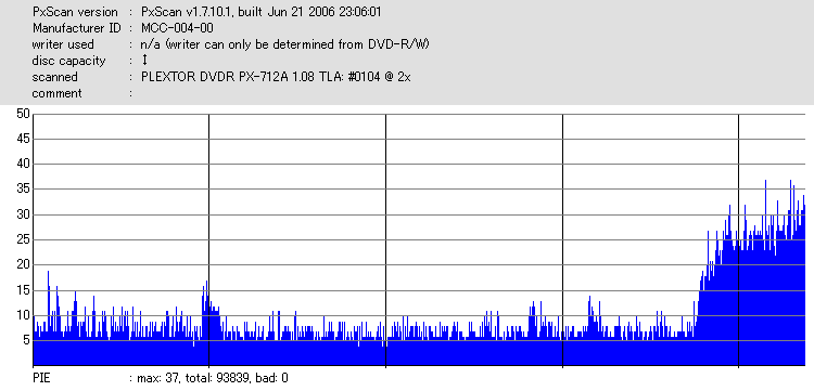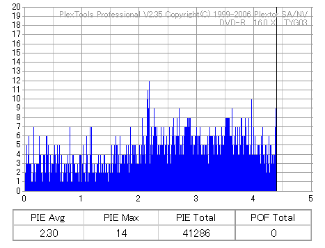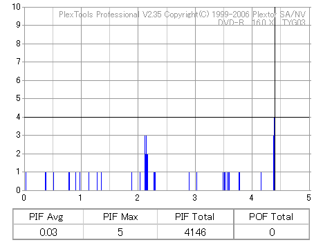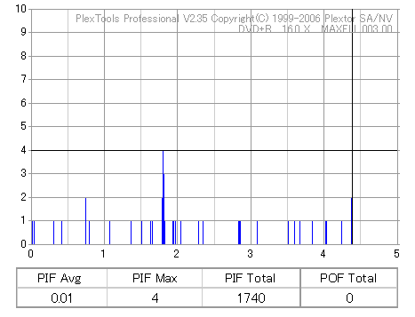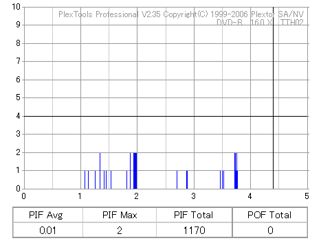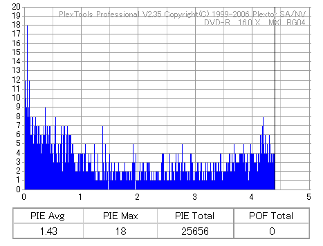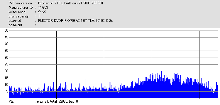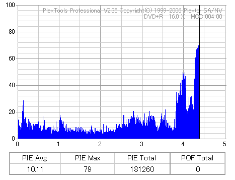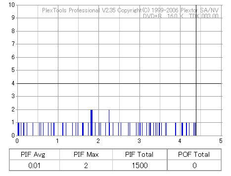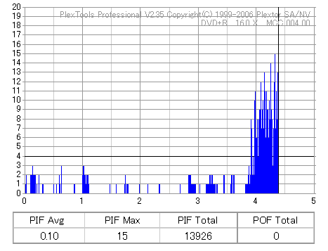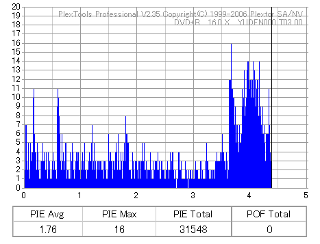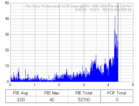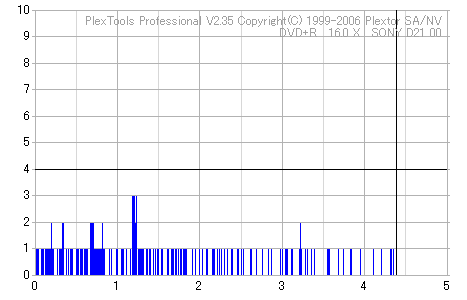 PLEXTOR系ドライブや自己計測での結果は悪くないんですが、 Betaが低めだったりTAの山が結構くっついてたりと少々不安な点も。 |
