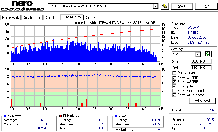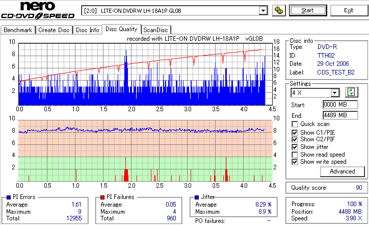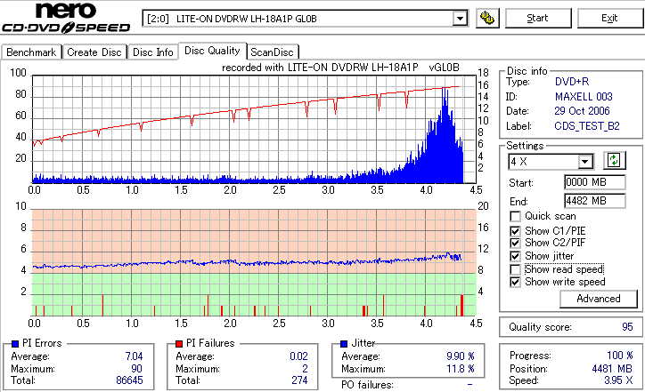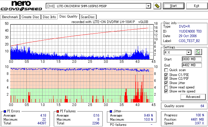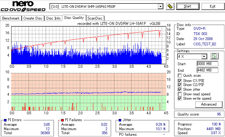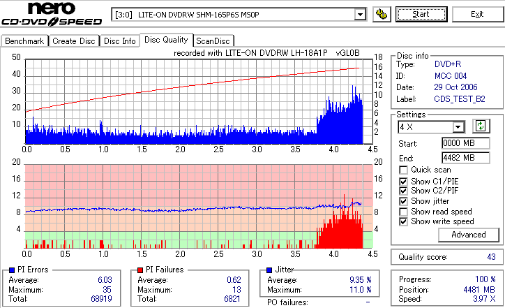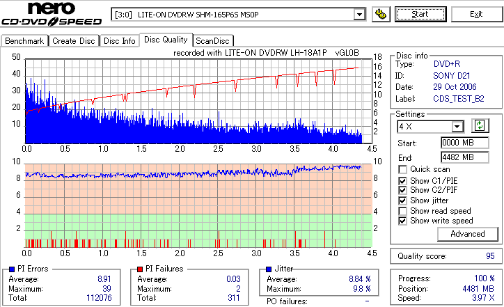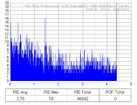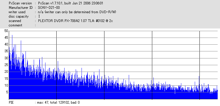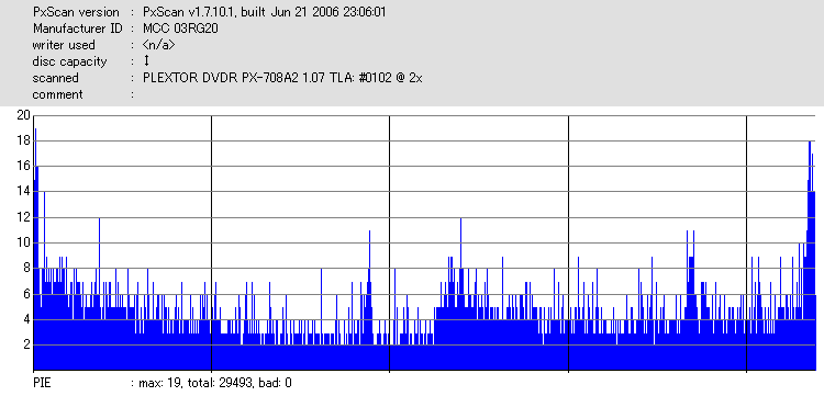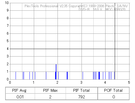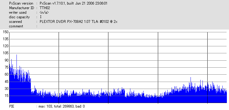 PLEXTOR系ドライブや自己計測での結果は悪くないんですが、 Betaが低めだったりTAの山が結構くっついてたりと少々不安な点も。 |