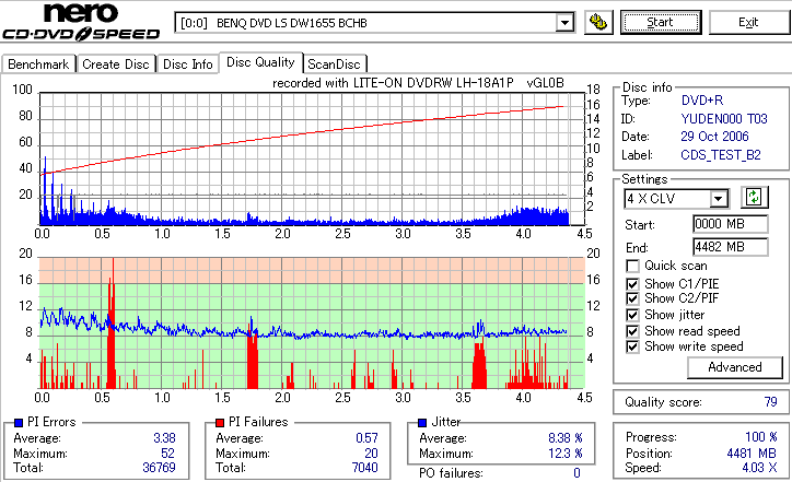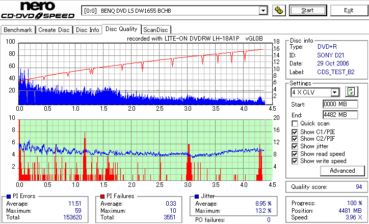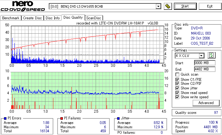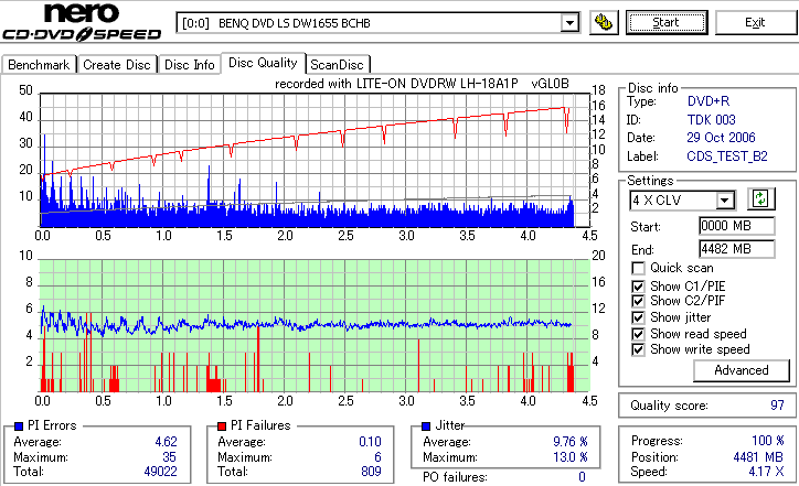 CDSpeed Quality Scan with BenQ DWxxxx - BenQドライブでのCDSpeed 品質テストグラフ - | |||||||||||||