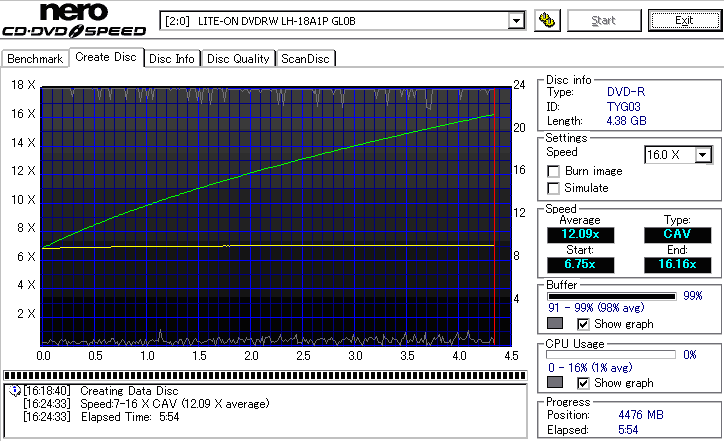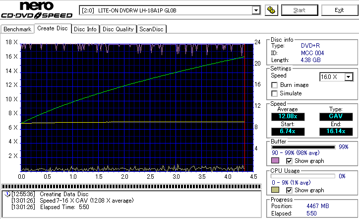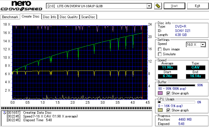 16倍メディアに速度違反をせず普通に16倍で書き込んだ結果です。