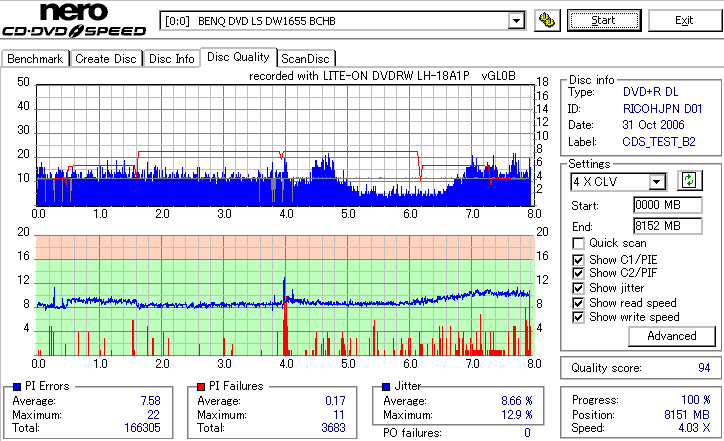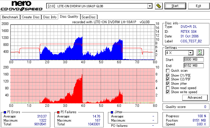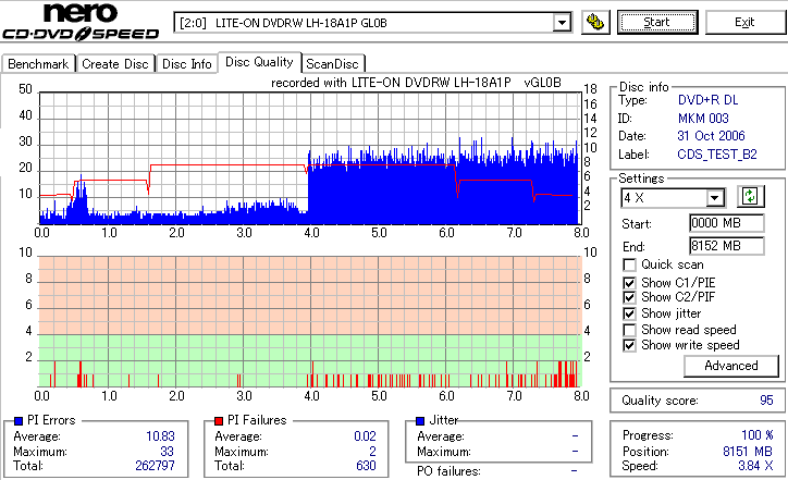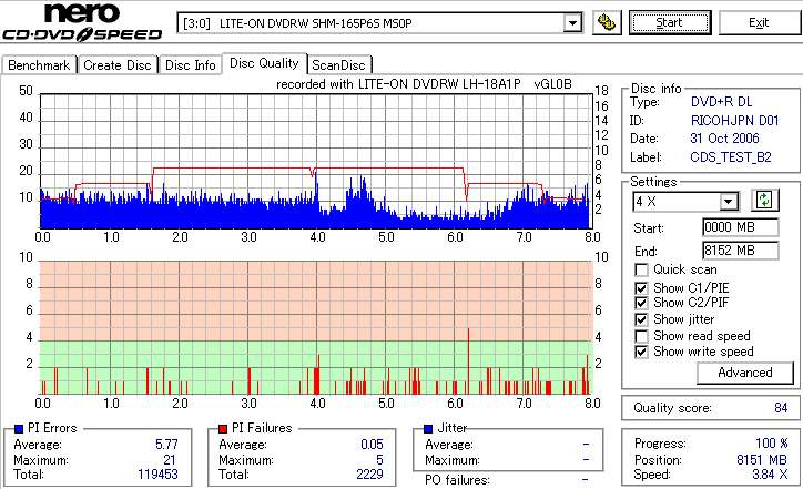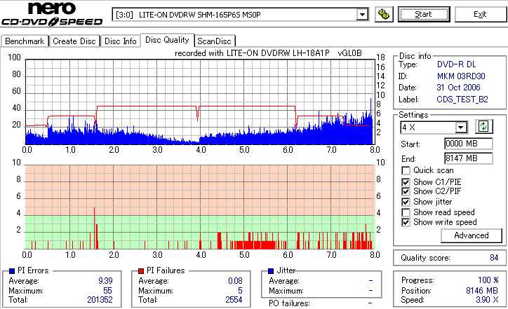 三菱の方は特に問題なさそうで、2層メディアにしてはかなり良好な結果になっています |