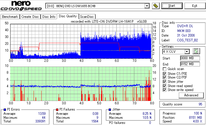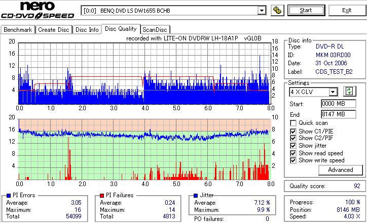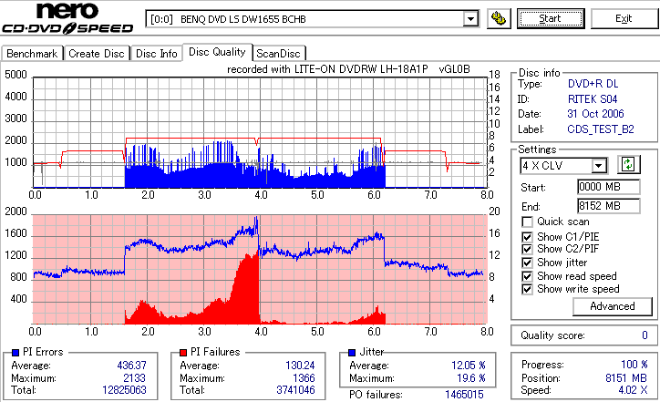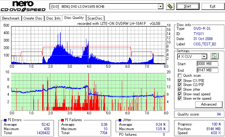 CDSpeed Quality Scan with BenQ DWxxxx - BenQドライブでのCDSpeed 品質テストグラフ - | |||||||||||||
