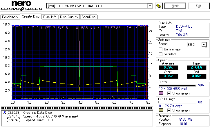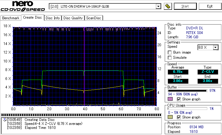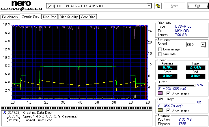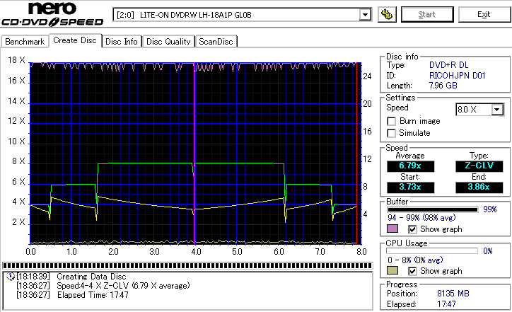 CDSpeed "Create DataDisc" - CDSpeedでのデータディスク作成時の速度グラフ - | |||||||||||||