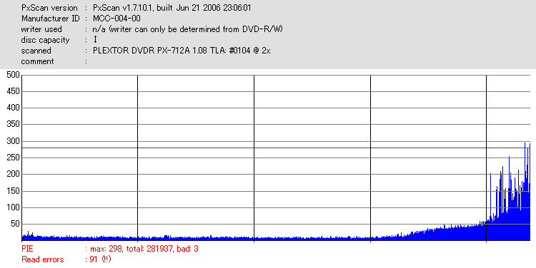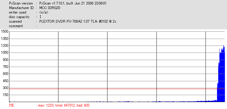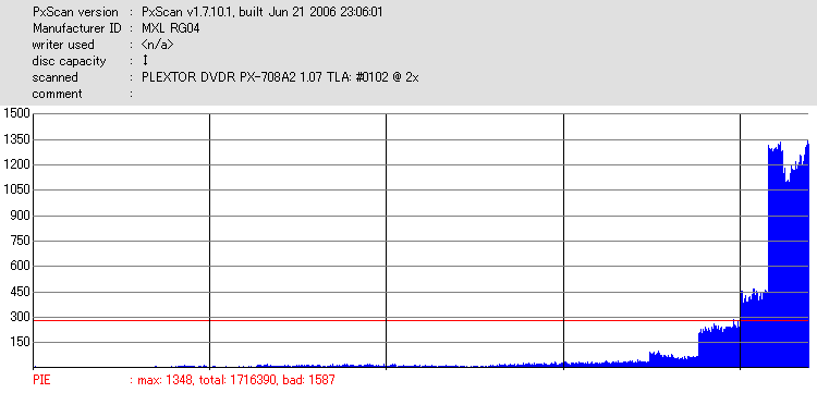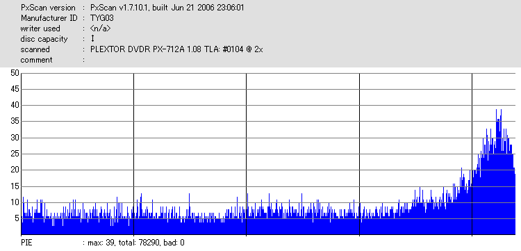 PxScan PISum8 with PLEXTOR PX-712SA - PX-712SAでのPxScan PI 8ECC Sumテストのグラフ - | |||||||||||||