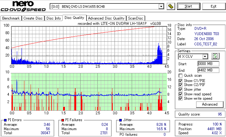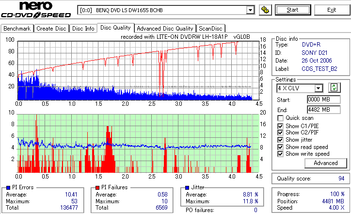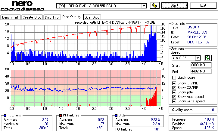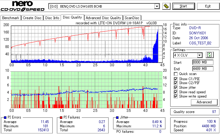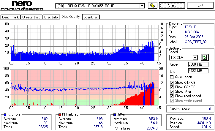 CDSpeed Quality Scan with BenQ DWxxxx - BenQドライブでのCDSpeed 品質テストグラフ - | |||||||||||||