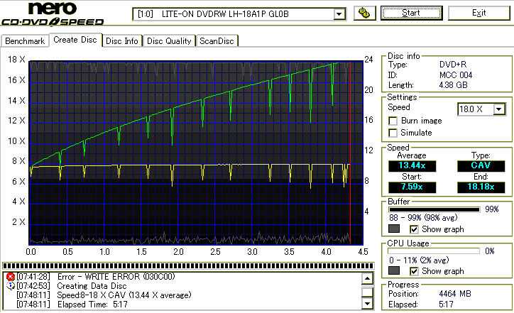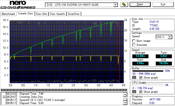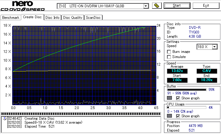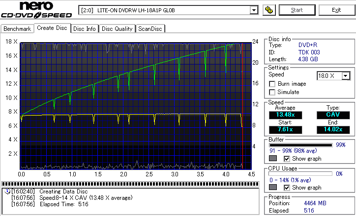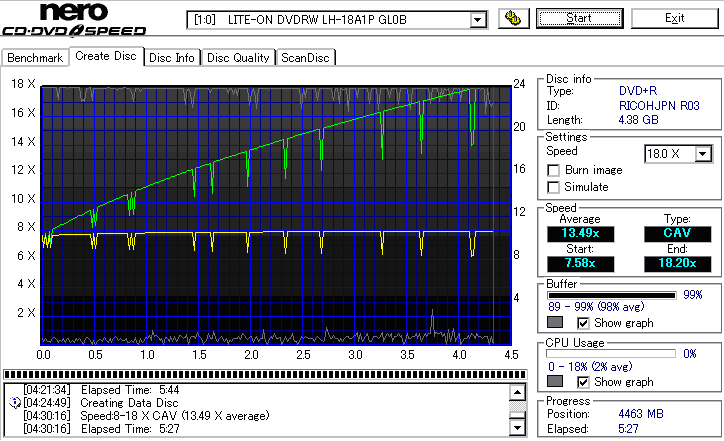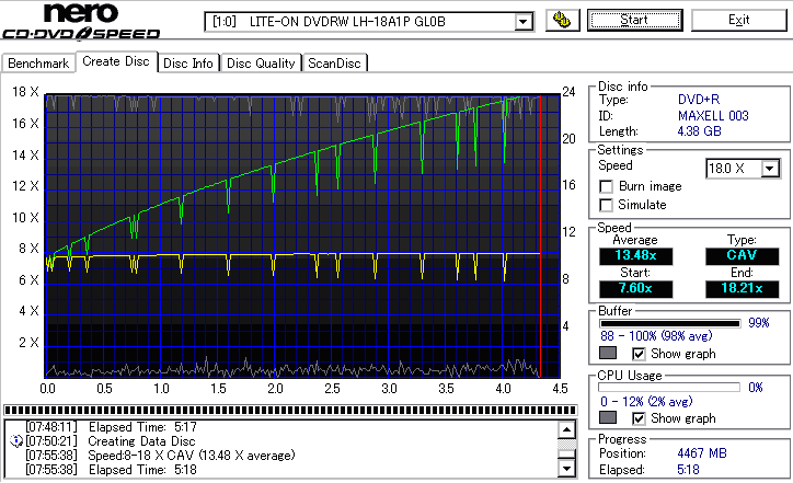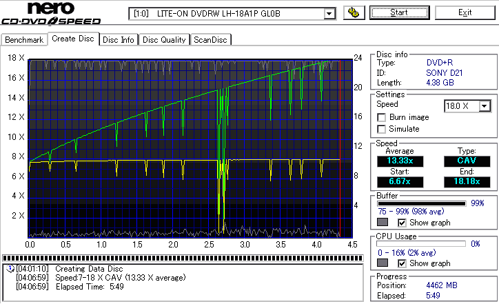 CDSpeed "Create DataDisc" - CDSpeedでのデータディスク作成時の速度グラフ - | |||||||||||||