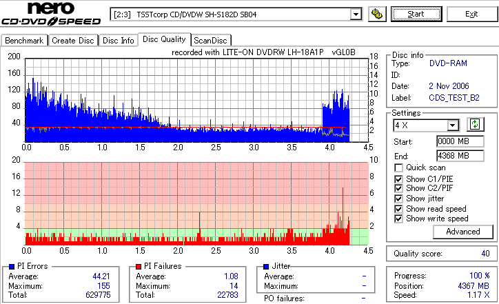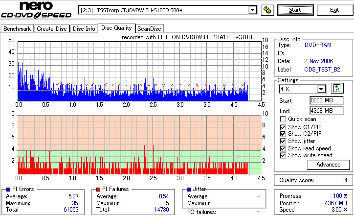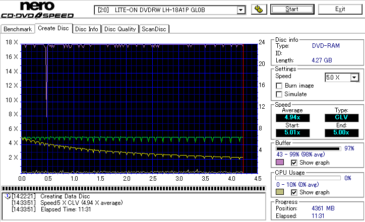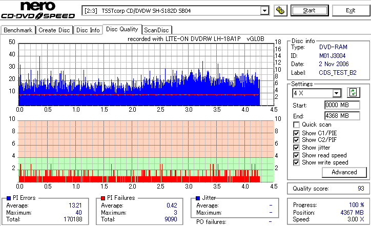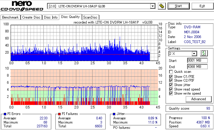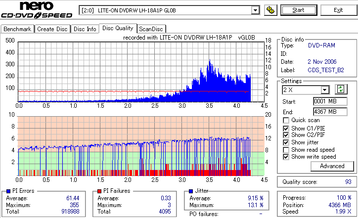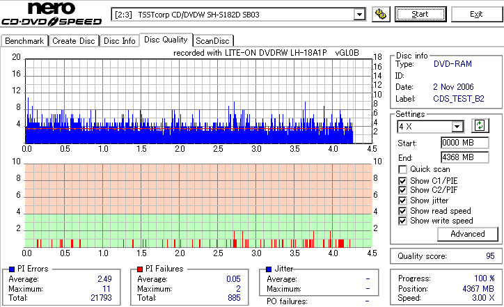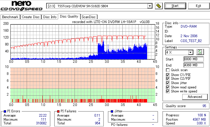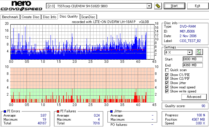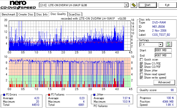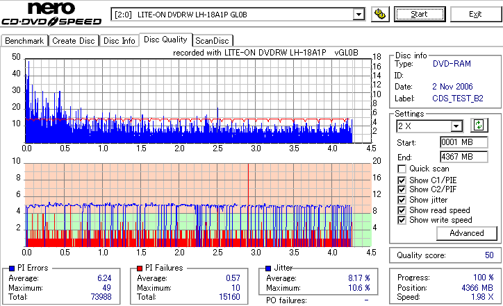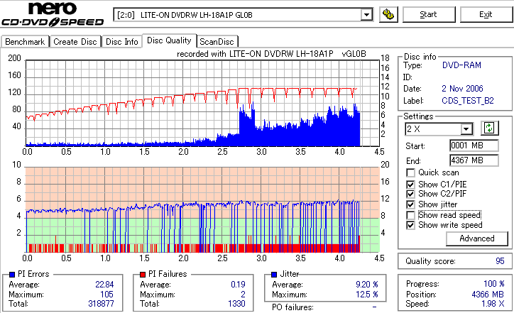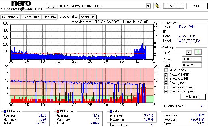 DVD-RAMは検証時、事前に完全消去したものを使用しています。 また、maxell3倍は以前使ってたものがあまりにも結果が悪かったため、別のものに取り替えて検証しました。 LITEONのドライブってRAMとかは苦手っぽいイメージがあるんですが、実際焼いてみたら意外とまともです。 現時点ではなにかと問題が出ることも多いmaxell12倍も規格値以内に収まってくれましたし、 Panasonicの5倍とかはかなり良い感じに焼けています。 この結果見てると、やっぱりDVD-RAMはmaxellより松下がいいなと強く感じました。 早く松下からも12倍速メディアを出して欲しい所です。 ちなみに、RiTEKの3倍速RAM(IDなしの方)はストラテジ非対応でした。 |