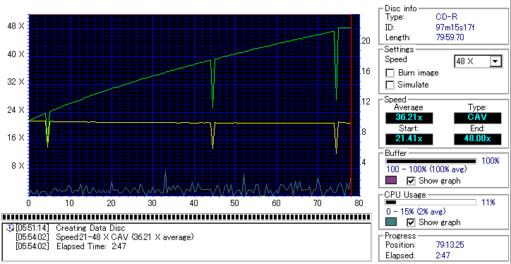 -データディスク作成による速度グラフ-
