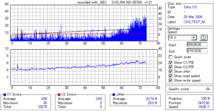 CDSpeed with BenQ DW1655_Disc Quality Test