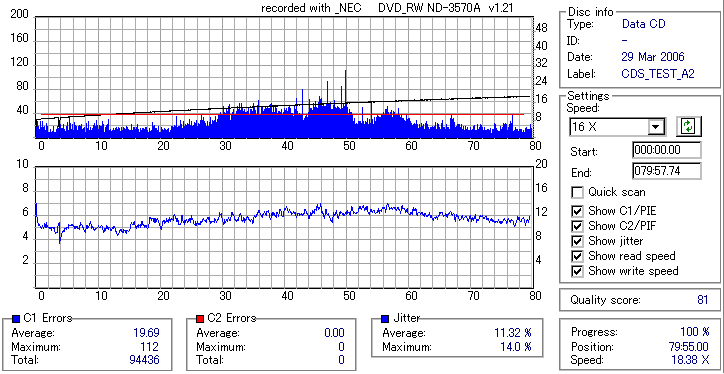 CDSpeed with BenQ DW1655_Disc Quality Test
