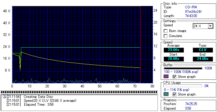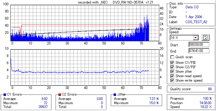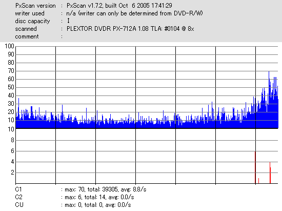外周でC2が出てしまってます。US CD-RWは他に殆ど選択肢が無いだけに、ちょっと残念な結果。