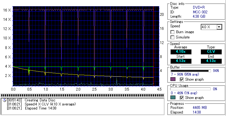 CDSpeed "Create data disc" -データディスク作成による速度グラフ- |