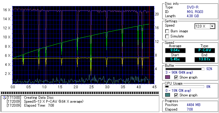 CDSpeed "Create data disc" -データディスク作成による速度グラフ- |