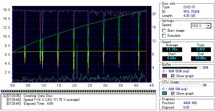 CDSpeed "Create data disc" -データディスク作成による速度グラフ- |