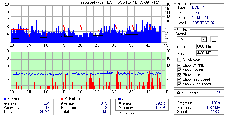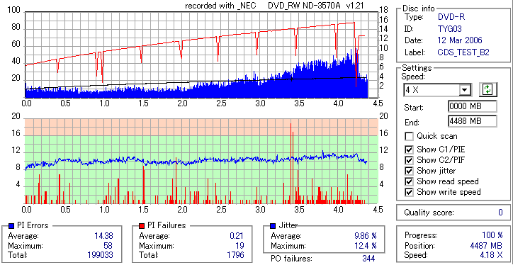 NEC DVD-RW/+RW 16x ND-3570A(I-O DATA DVR-UN16FA) / ND-4570A -Burn Quality Test- |