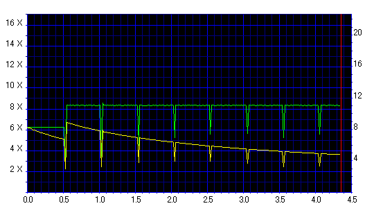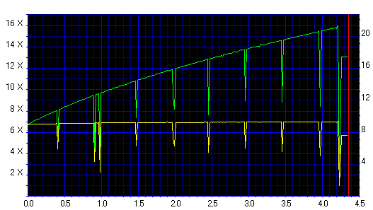 記録速度のグラフ。![]() 普通の16倍速グラフです。外周減速してますが。 |