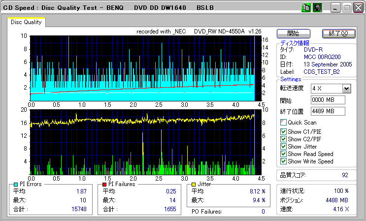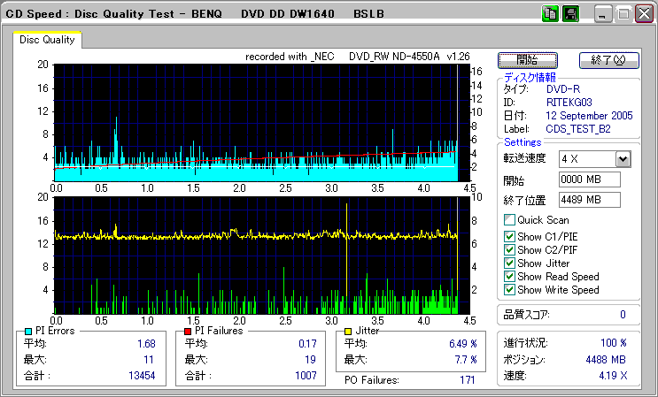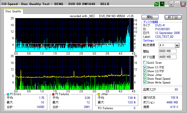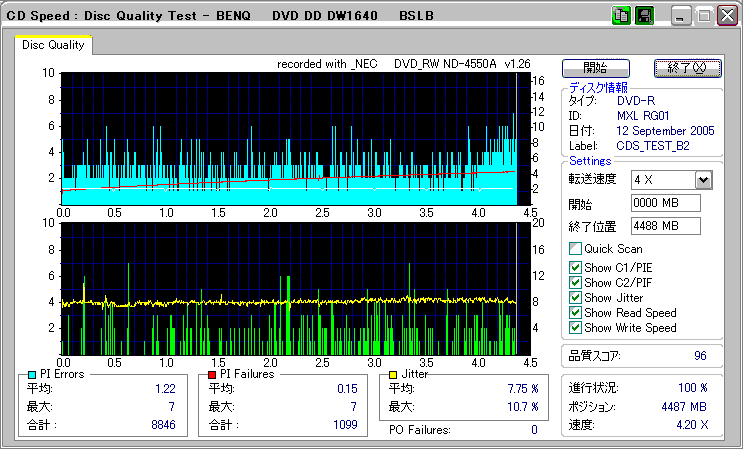 1x 総評 全体的に1倍焼きの品質は最近の高倍速志向のドライブの中では良好といえるでしょう。 pioneer等倍が4倍で焼けるっていう…かなりどうでもいい速度違反ができたりします。 |