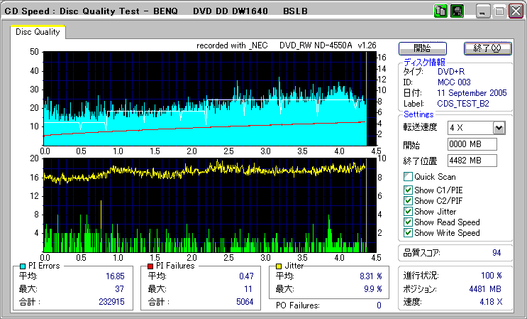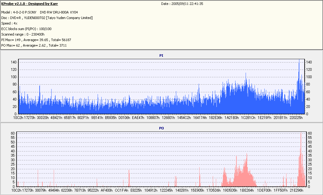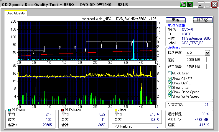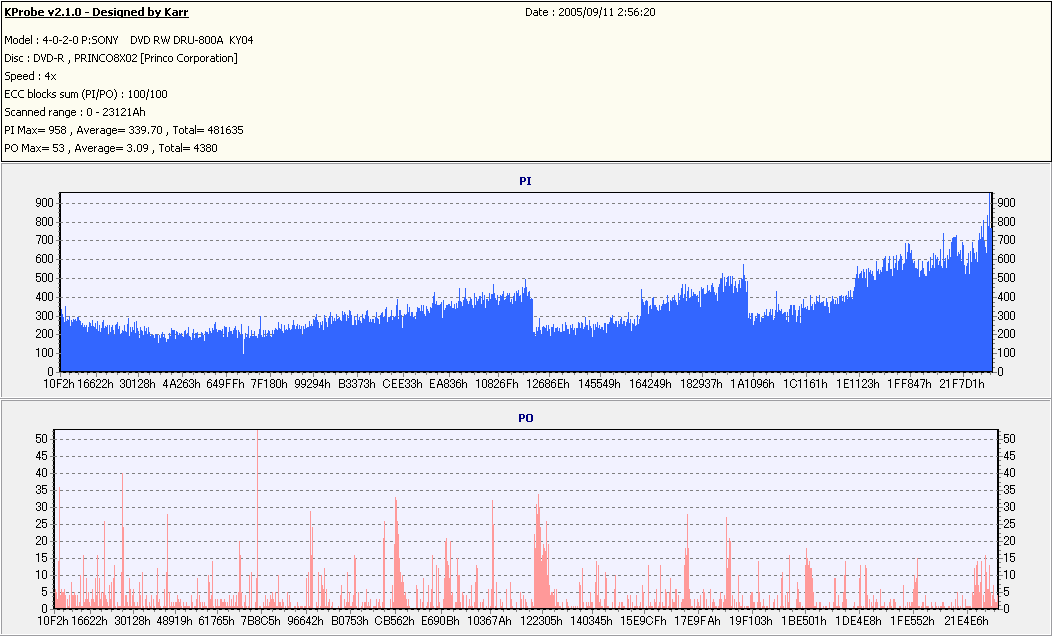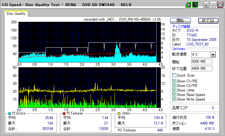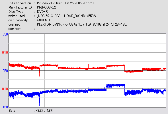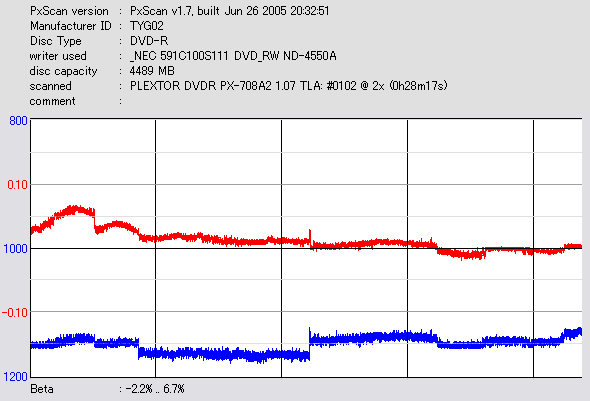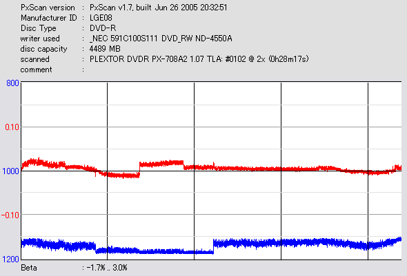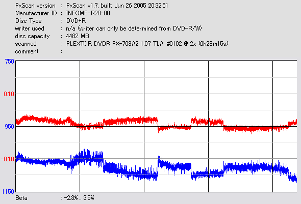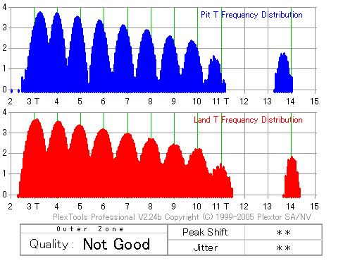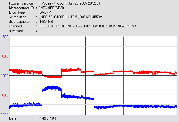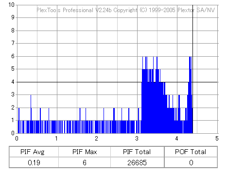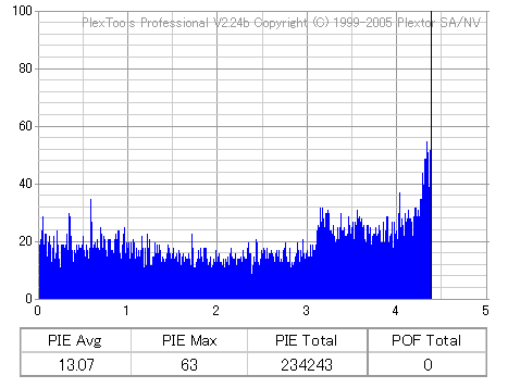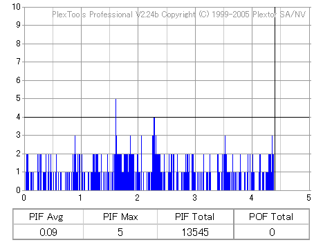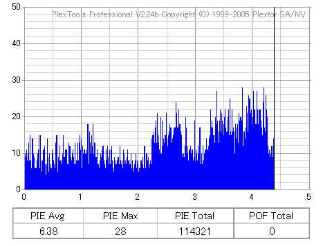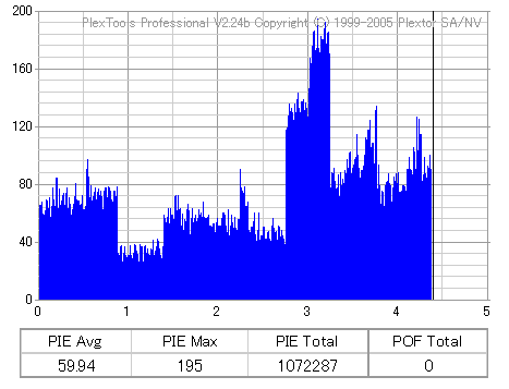 謎メディアの代名詞みたいなディスク。 他のドライブとの差を比較してみると、ああやっぱりこのドライブは 焼き品質高いんだなって思います。 |