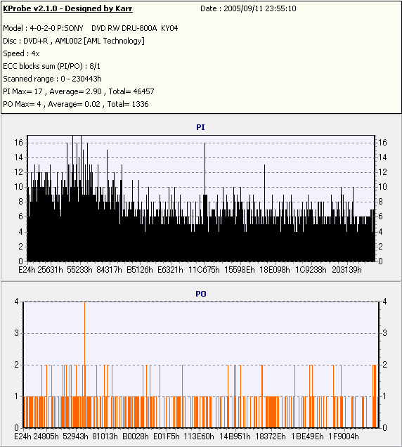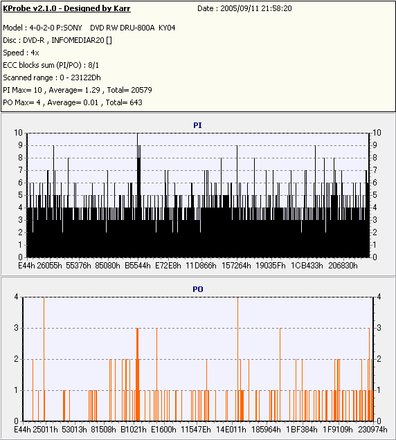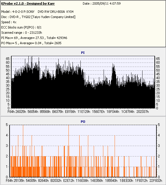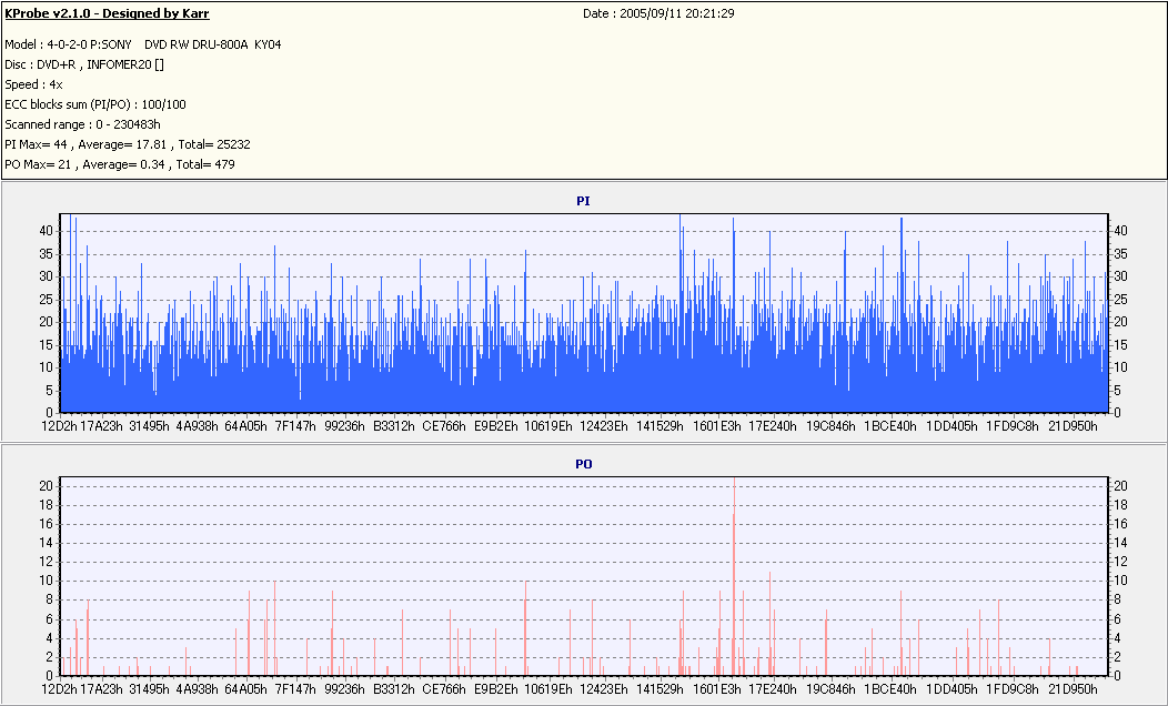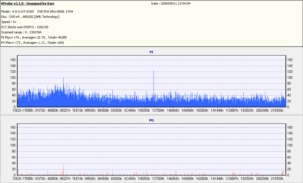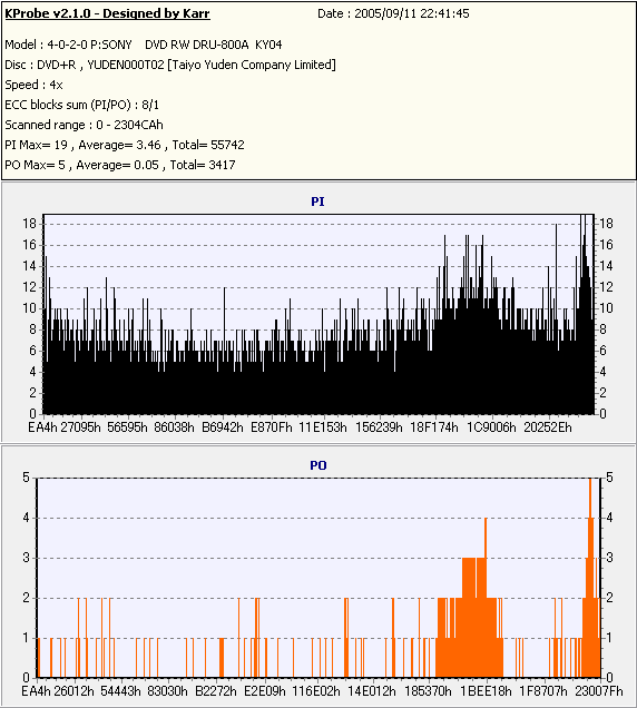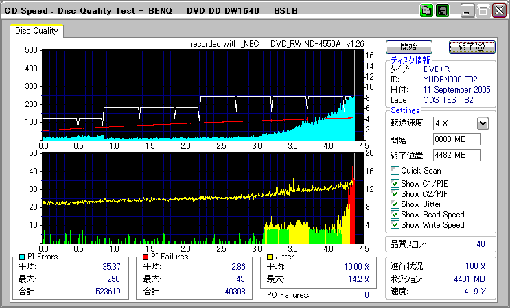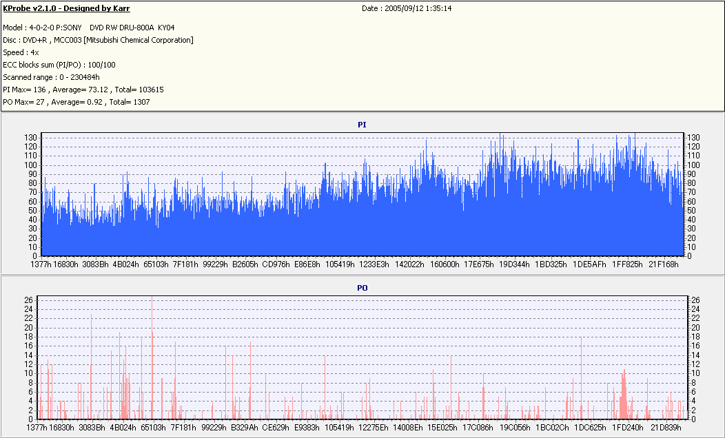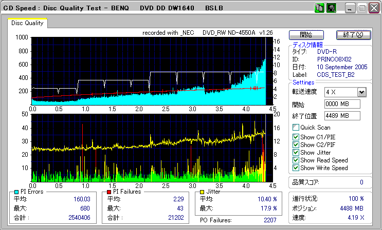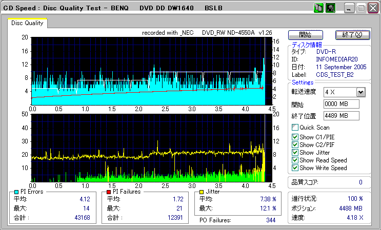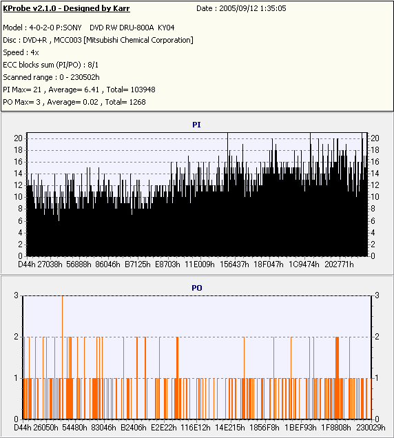 謎メディアの代名詞みたいなディスク。 他のドライブとの差を比較してみると、ああやっぱりこのドライブは 焼き品質高いんだなって思います。 |