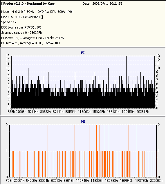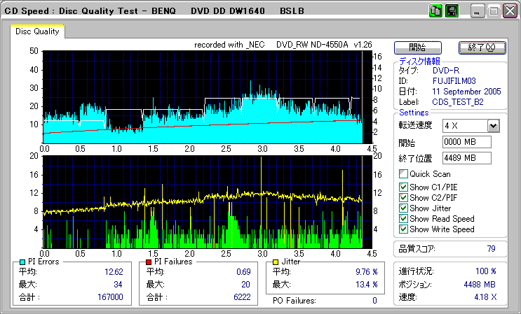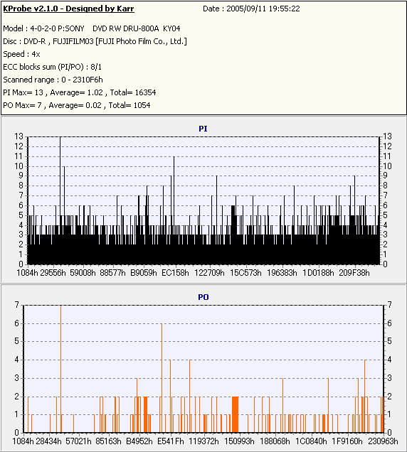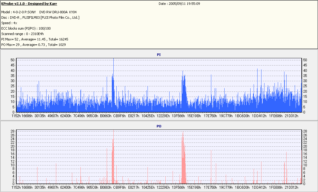 オーム電機のFUJI-DYE採用8倍メディア。 安定こそしてますが全体的にエラー多めです。 |