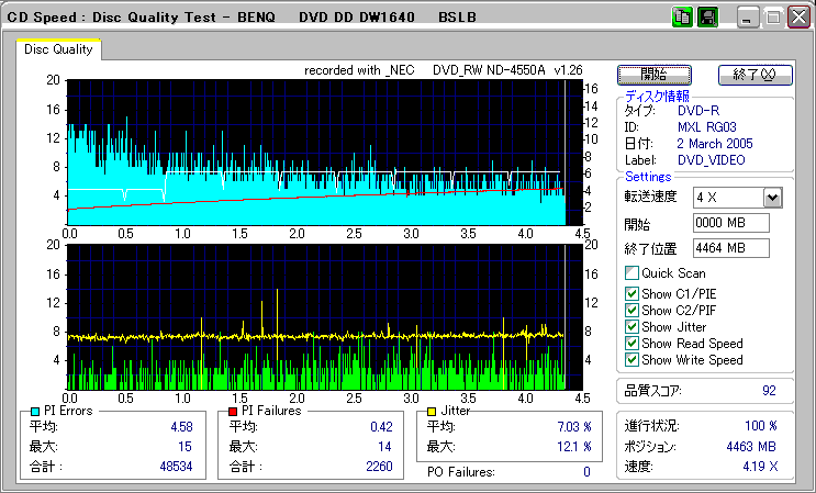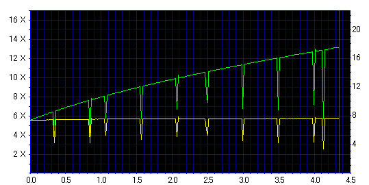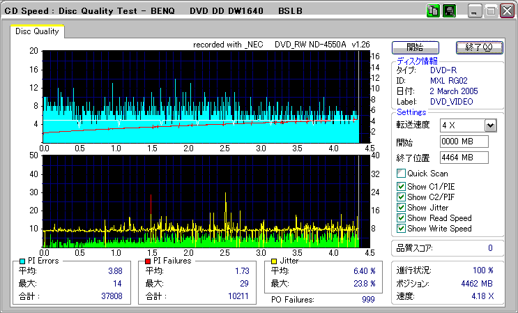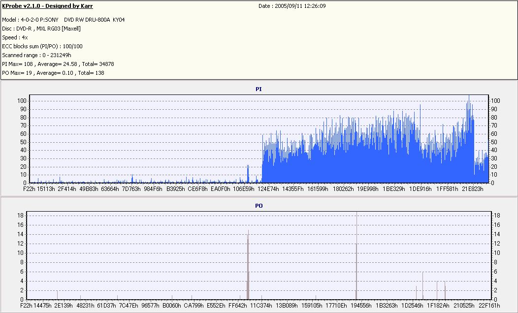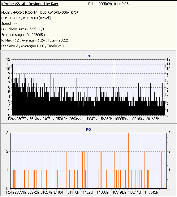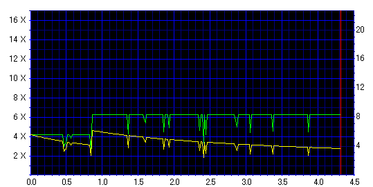 更に調子に乗って12倍。なんて勿体無い… まだ規格値こそ超えない結果が多いですが、やはり勿体無いので6倍で焼きましょうよ。 こんな高速焼きは他の16倍メディアにでも任せれば良いのです。 しかし12倍でもスパイクが発生してしまいました。どうやら問題なのはCAV焼きの12x付近。 |