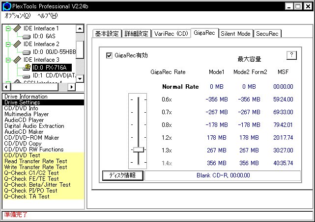 ・・・ちなみに、同じPX-716Aで1枚\16のRitekに1.2xでGigaRecした結果と、SWの90min