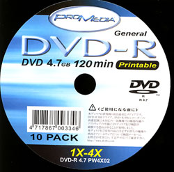 ![]() DVD-R 4倍速対応 ジュエルケース入り |