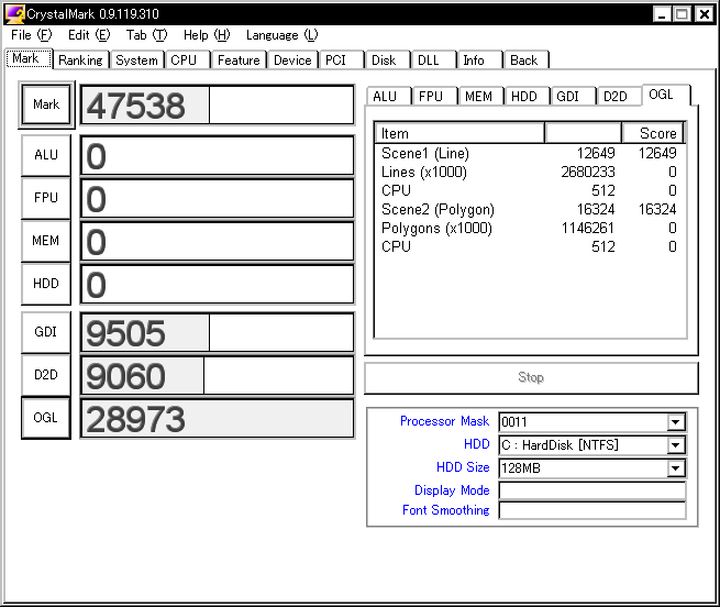 ベンチマーク結果 Superπ 104万桁 ![]() Superπ 104万桁 ダブル起動 ![]() 午後べんち TMpgEnc2 サンプルファイルエンコード速度 Mpeg2 (最高画質・最低速 CBR) ![]() WMV9_VCM (最高画質・最低速 CBR) ![]() WinRAR サンプルファイル(1GB) 圧縮時間 ![]() (サンプルファイルは5KB程度ですが、解凍すると1GBに膨らみますので十分ご注意ください) CrystalMark(グラフィックだけ) 3DMark06 FFXI Bench ver.3 high ![]() ゆめりあベンチ 2048x1536 最高 ![]() |