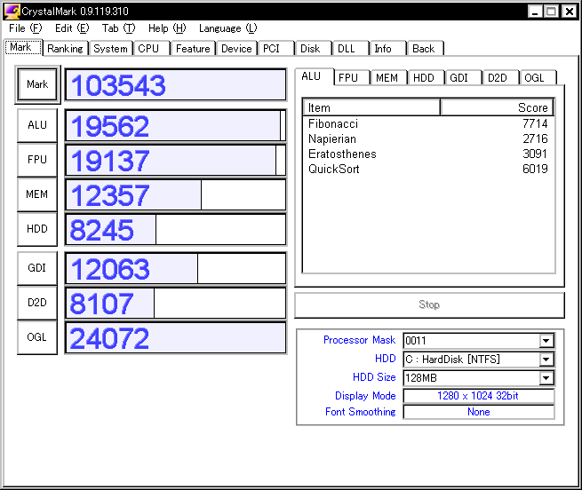 ベンチマーク結果 Superπ 104万桁 ![]() Superπ 104万桁 ダブル起動 ![]() 午後べんち TMpgEnc2 サンプルファイルエンコード速度 Mpeg2 (最高画質・最低速 CBR) ![]() WMV9_VCM (最高画質・最低速 CBR) ![]() WinRAR サンプルファイル(1GB) 圧縮時間 ![]() (サンプルファイルは5KB程度ですが、解凍すると1GBに膨らみますので十分ご注意ください) =====================以下、7900GSシングル状態での動作===================== CrystalMark ![]() 3DMark06 FFXI Bench ver.3 - high ![]() ゆめりあベンチ 2048x1536 最高 ![]() |