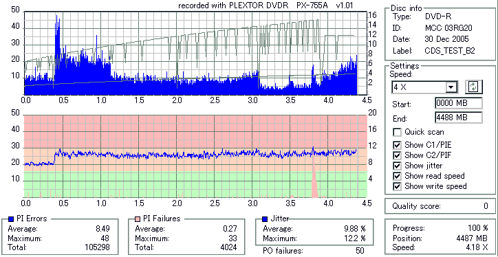 PLEXTOR DVD-RW/+RW 16x PX-755A/JP -DVD-R Burn Quality Test- |