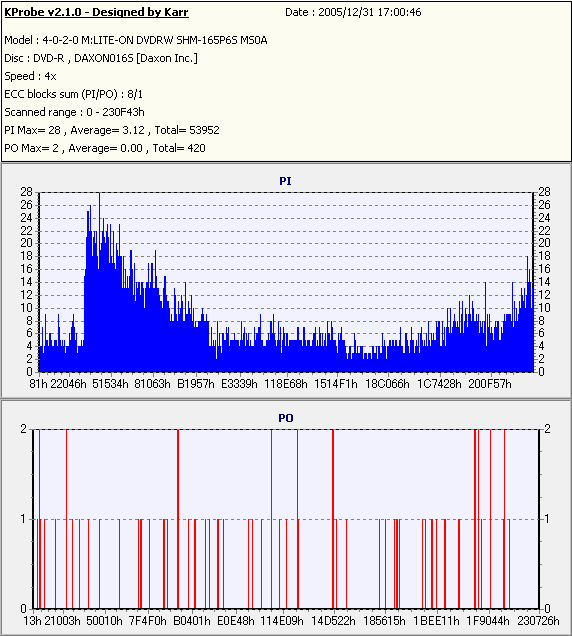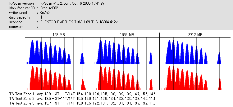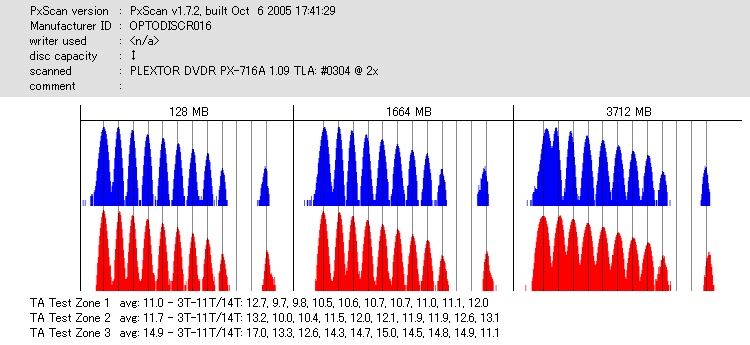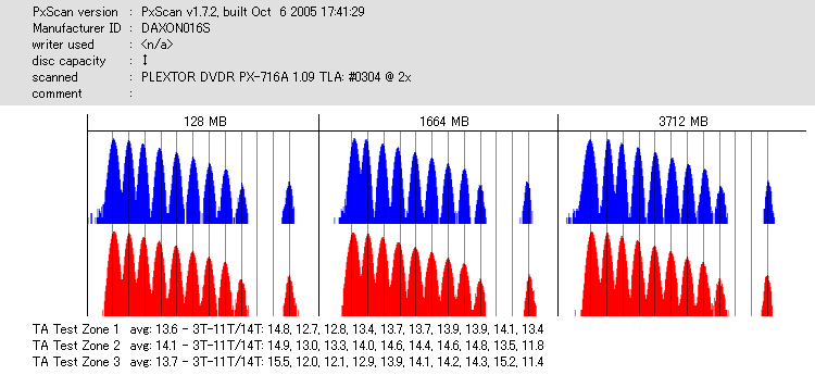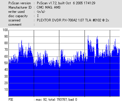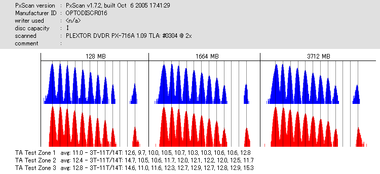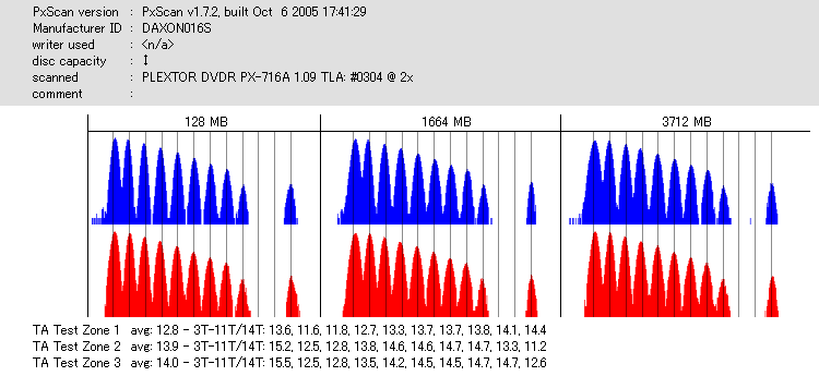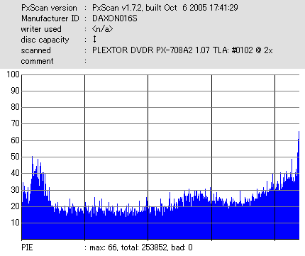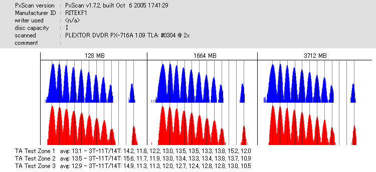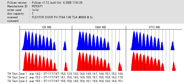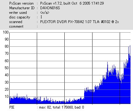 Group.Bでは台湾の主要メーカーであるCMC,DAXON,GigaStorage,Optodisc,Prodisc,RiTEKについて扱います。 ちょっとどう判断したものか困る結果になりましたが……まあ、DAXONやCMCが結構まともに焼けてるから悪くはないんでしょう。 しかし、これならいっそのことSmartbuyのフル解析モード一本に絞った方が幸せになれそうな気もします。 |